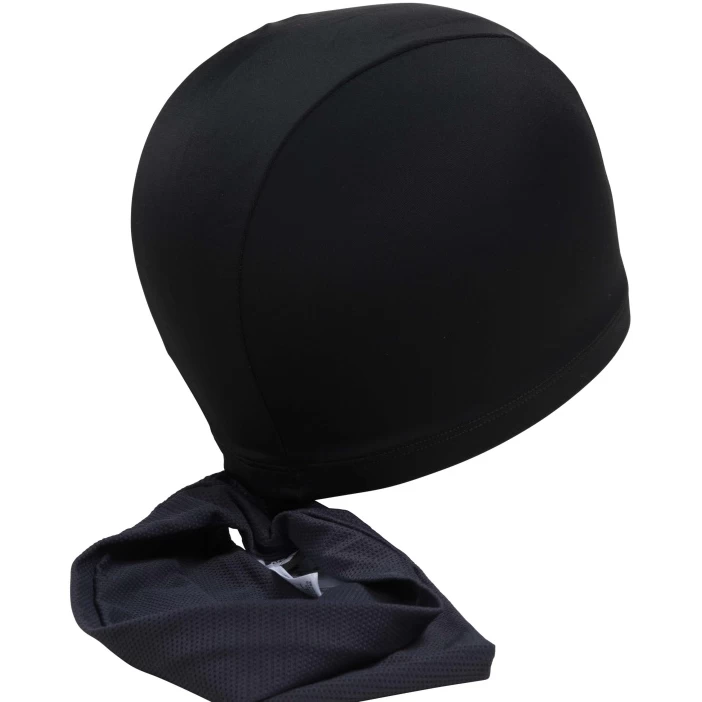 The innovative and extremely comfortable arena unisex swim cap Smartcap is a unique swim cap for fitness swimmers with long hair. The patented system is easy to use and the cap can be put on in just three seconds. First, the hair band is pulled on, which holds the hair together. Then the long hair is placed in the cap and the cap is pushed forward over the head. The bathing cap fits perfectly and the long hair is protected and comfortable under the cap.