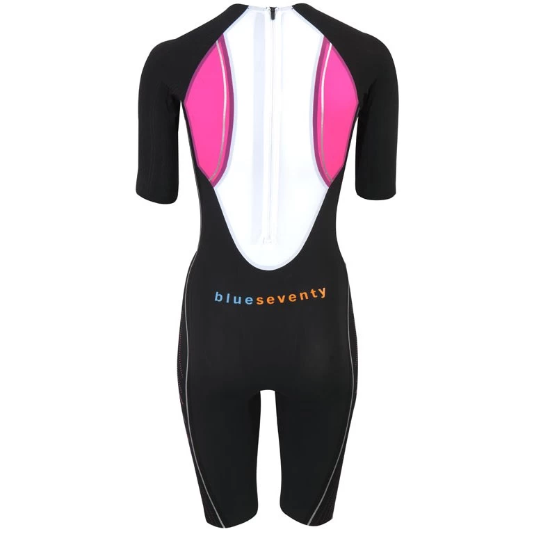 – Long cut short sleeves provide additional skin and compression coverage for faster swims.