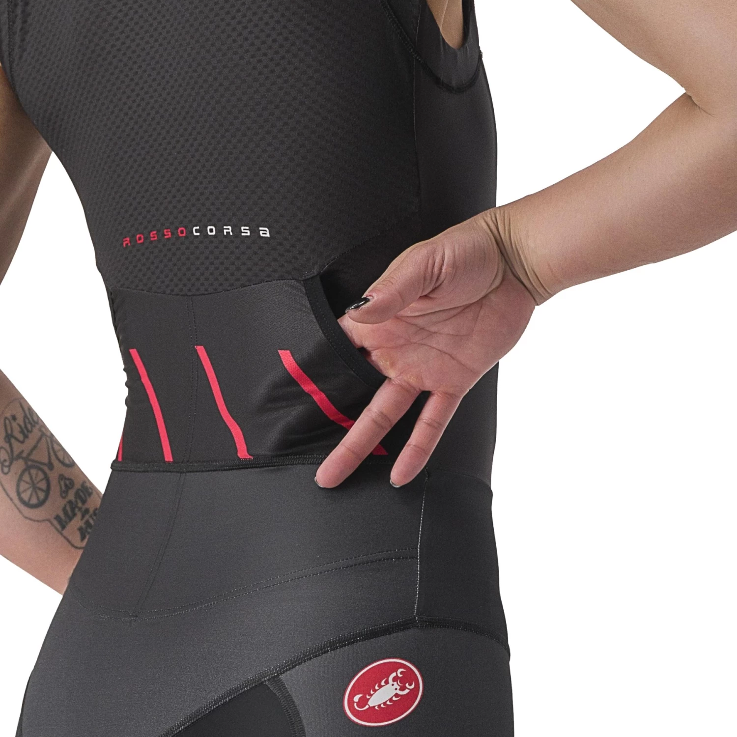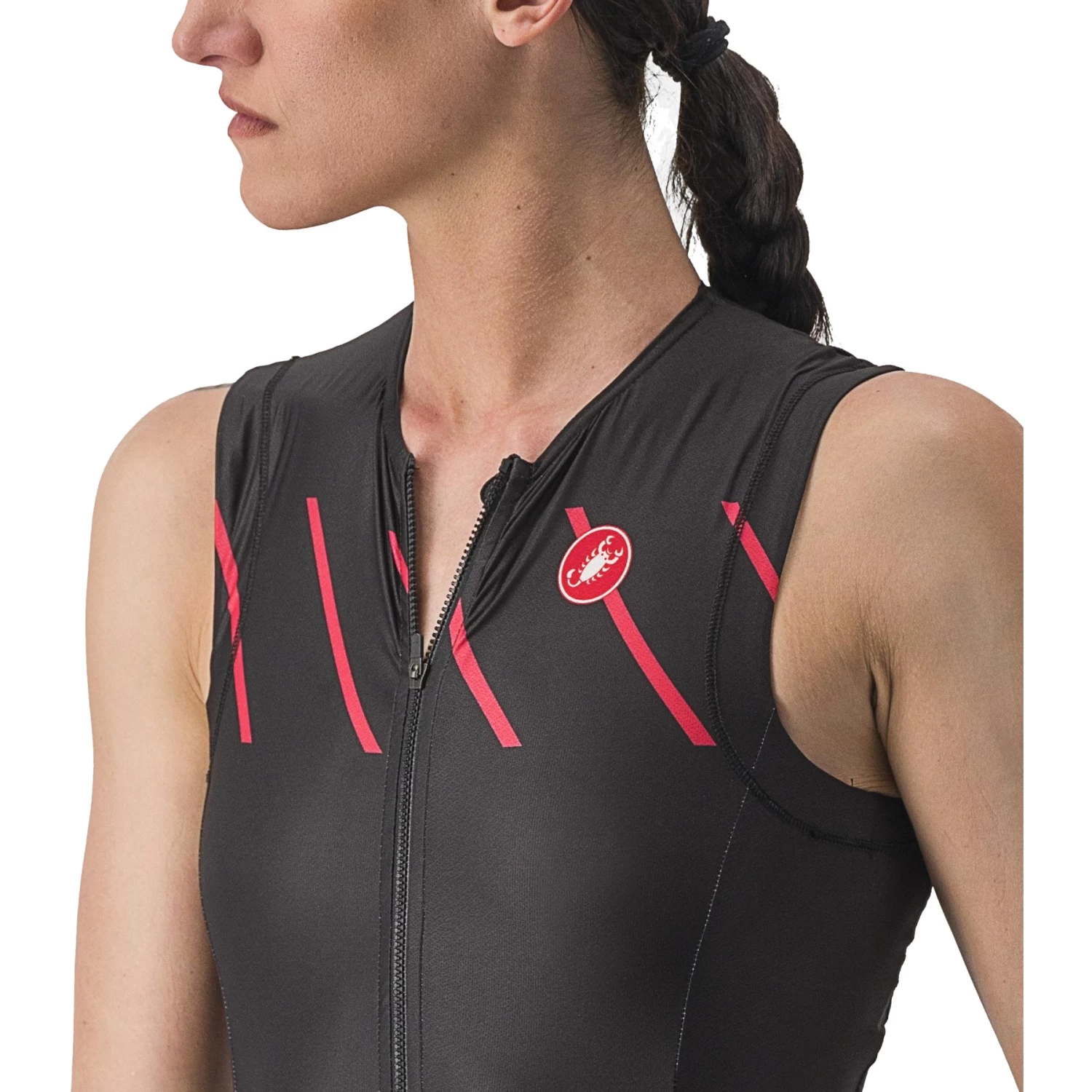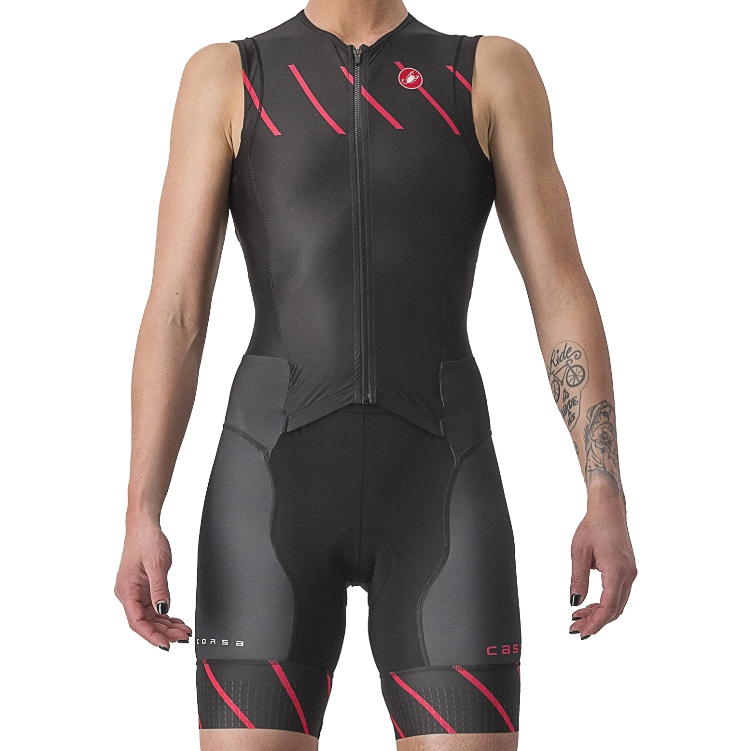 The sleeveless version of Castelli’s Free Sanremo suit, with meticulously considered details that make a difference on race day.