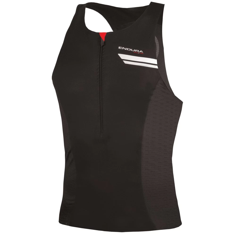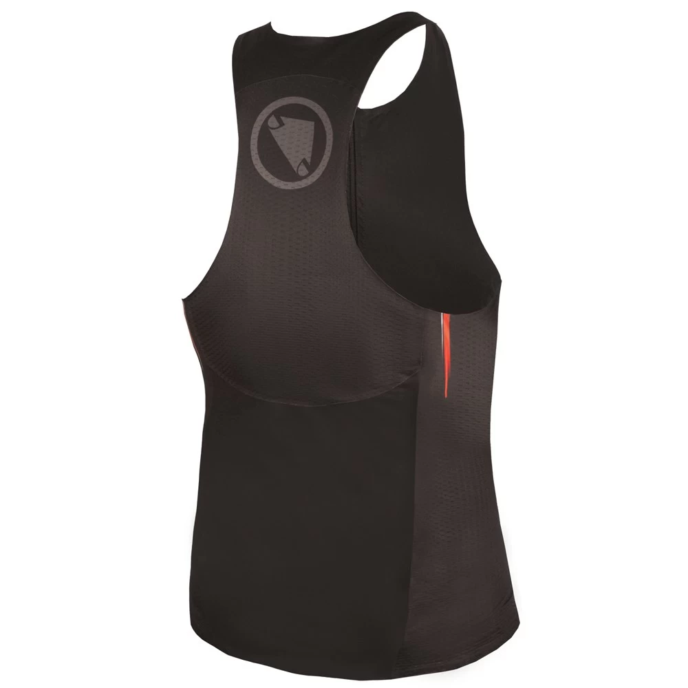 The Endura Tri Vest is equipped with a bonded, flush integrated rear pocket. 3D printed silicone interface grippers bind with short.