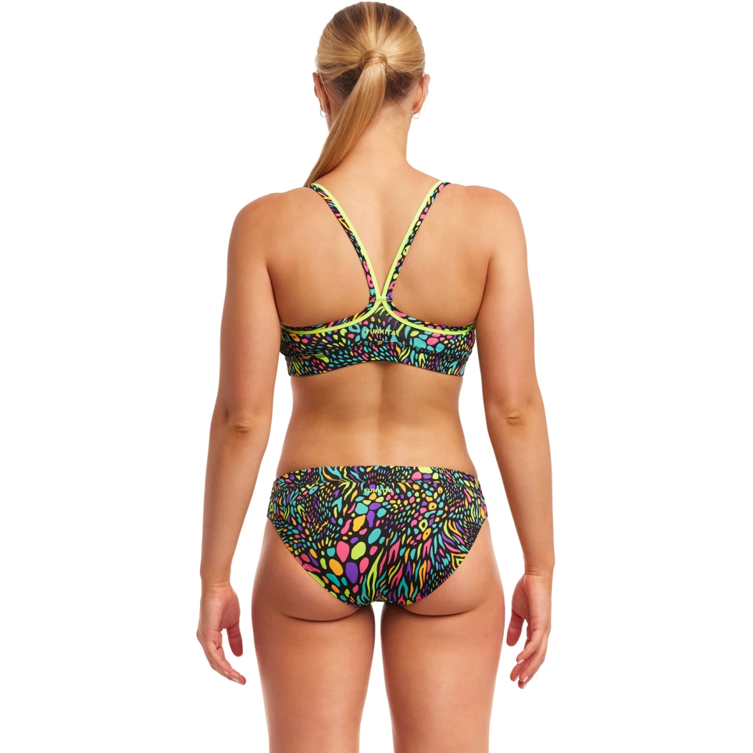 The Funkita Sports Bikini Brief sits on your hips and the smooth flat elastic waistband and drawcord will make you feel snug and secure in the water. It got a moderate leg rise and full rear coverage to keep your peaches packed peacefully in position. Remember you can tie the drawcord to keep it tight and secure so it won’t go anywhere without you. The bikini brief is sold separately. It is made with all the care and love in production that makes it proud to be Funkita.