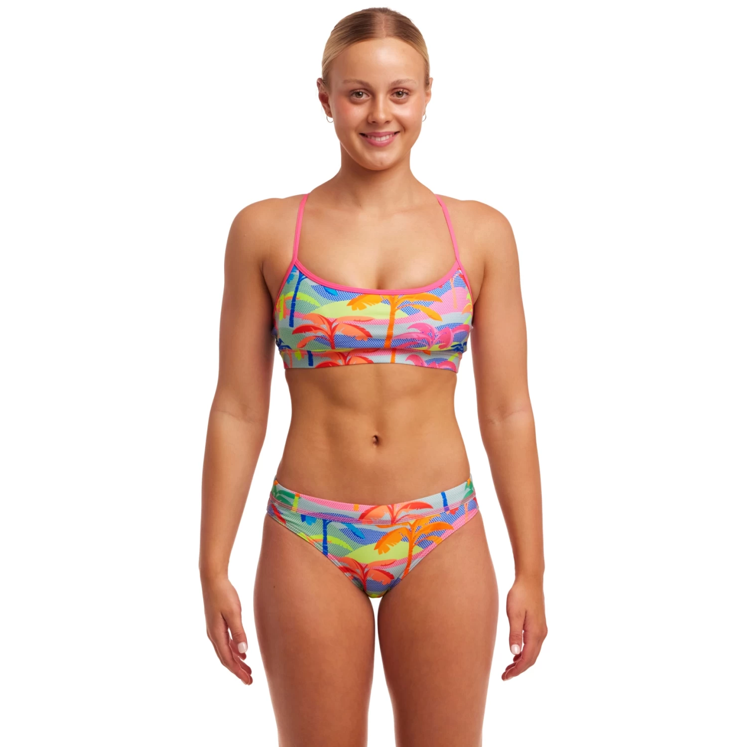The Funkita Swim Crop Top is a racerback crop top with single bind shoulder straps, removable padding and supportive back panel. The flat underbust elastic and removable padded cups will give you added comfort and support. It is sold as a separate so you can mix and match it across sizes and prints with your fave Funkita brief. The bikini top is made with all the care and love in production that makes it proud to be Funkita.