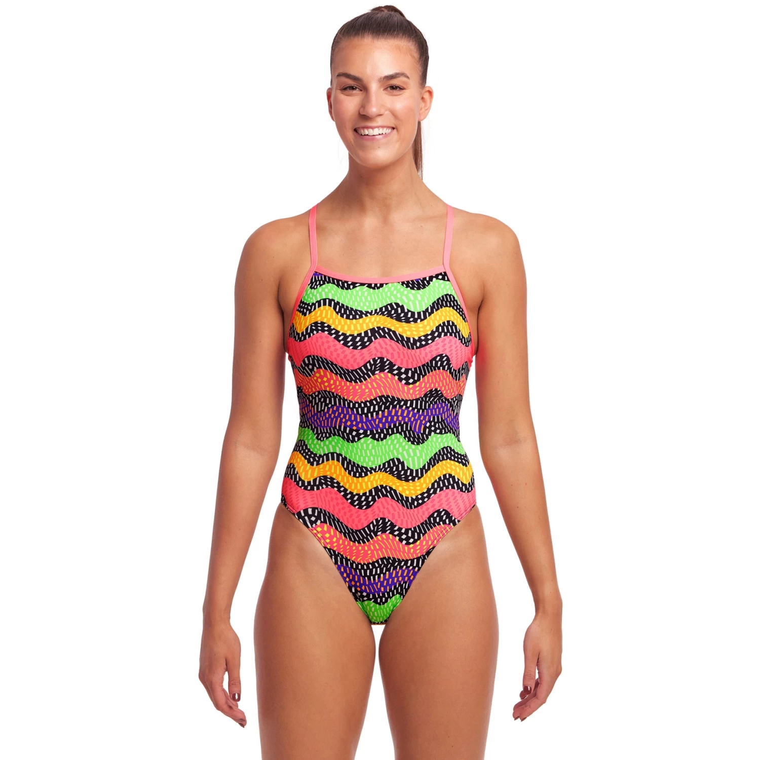 Tie it up, tie it tight, tie it anyway you like! The single bind straps can be tied at the back to give you the perfect fit for your next session. If you’re long and tall tie it loose for extra length in your shoulder straps, or if you’re short and sweet tie it tighter to pull it in more. The Funkita Tie Me Tight Swimsuit got a higher leg and bum than the Funkita Diamond Back and Single Strap One Piece swimsuits but will still keep you covered throughout your session.
