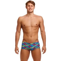 Cruise through the water in total comfort and support with 16.5cm sides and stitched front pouch for added room and double lining for support. The Funky Trunks Classic Trunks got a drawcord to keep it locked in position and a wide elastic leg opening and waistband for added comfort around your hips and legs. The swim shorts are not boasting but they are a fine specimen that is exceptionally well made for durability and comfort.