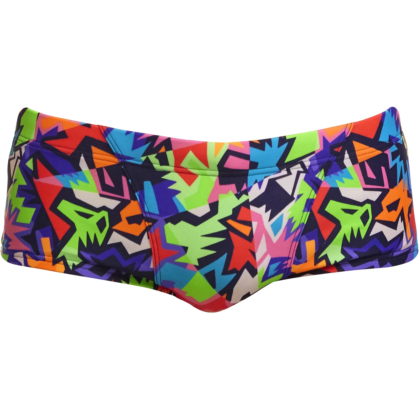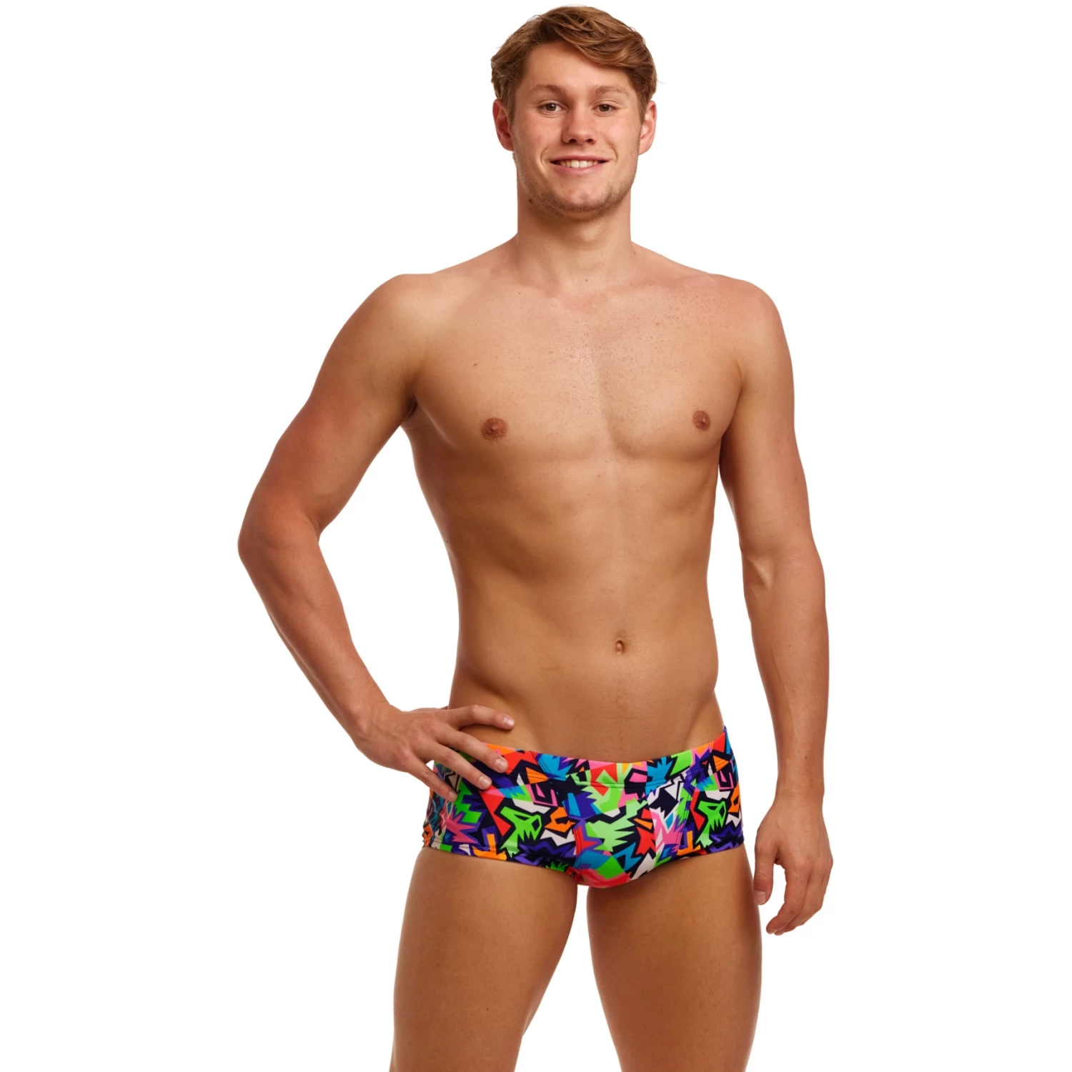 Cruise through the water in total comfort and support with 16.5cm sides and stitched front pouch for added room and double lining for support. The Funky Trunks Classic Trunks got a drawcord to keep it locked in position and a wide elastic leg opening and waistband for added comfort around your hips and legs. The swim shorts are not boasting but they are a fine specimen that is exceptionally well made for durability and comfort.