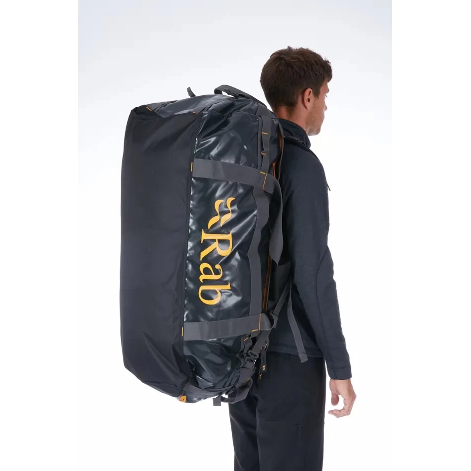 The Kitbag 120L is a robust, durable duffel bag, ideal for high mountain and polar expeditions or for longer trips and trekking tours. It is made of a tough and durable 600D fabric and coated with a water-resistant film. Triple-stitched seams and a double-thick bottom make the duffel even more durable. The contents are easily accessible through a large, closable main opening, and there are 2 interior pockets under the lid. For transportation, there are two removable shoulder straps, 4 handles and daisy chain attachment points.