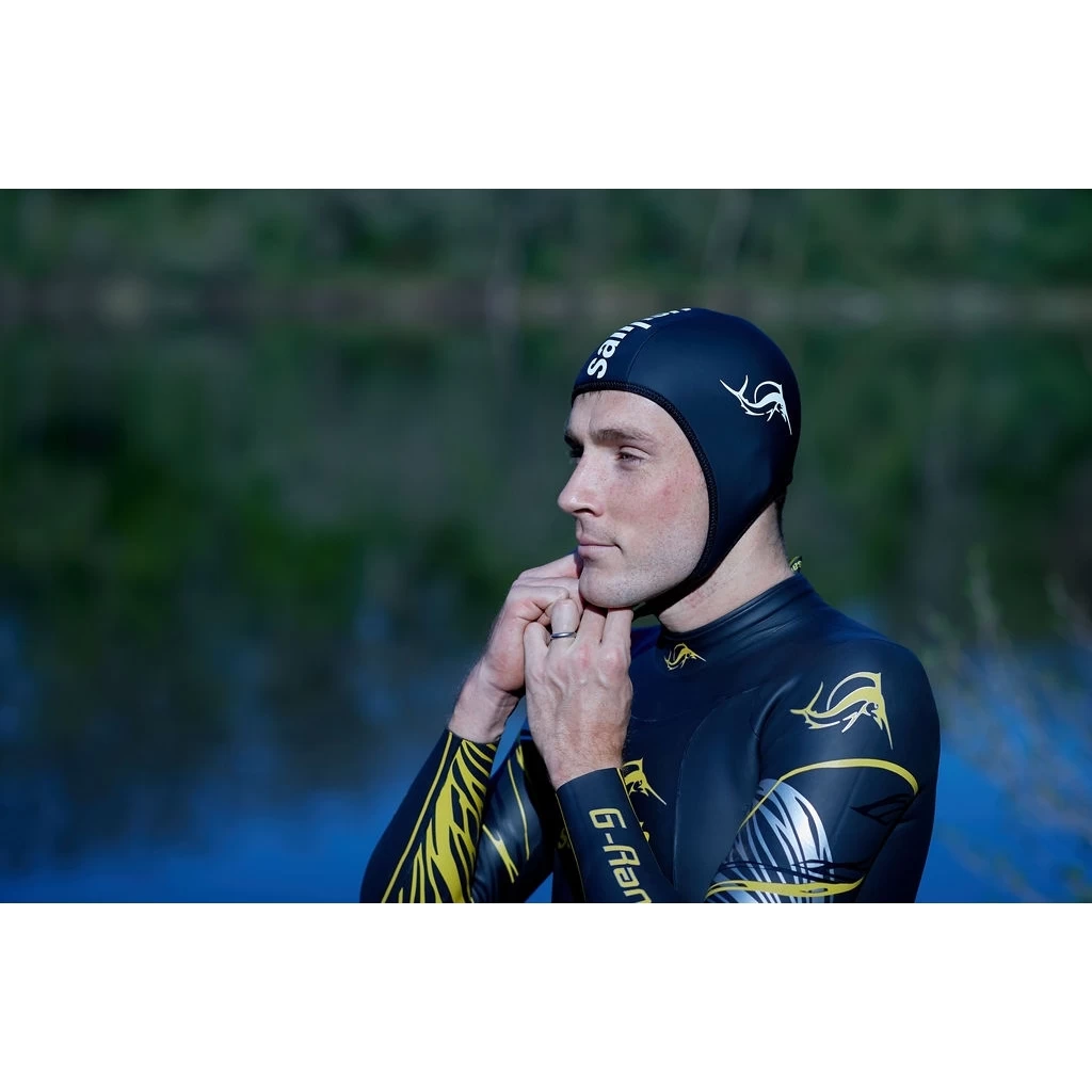 Ergonomic and adjustable neoprene bathing cap made of 2 mm thick very Smooth Skin neoprene for thermal protection in low water temperatures.
