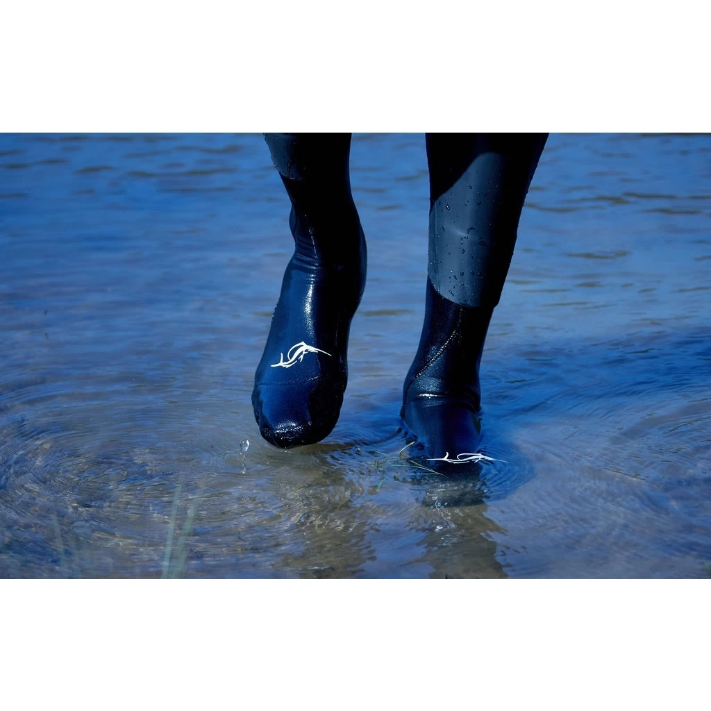 Warming neoprene swim socks with non-slip sole for low water temperatures.