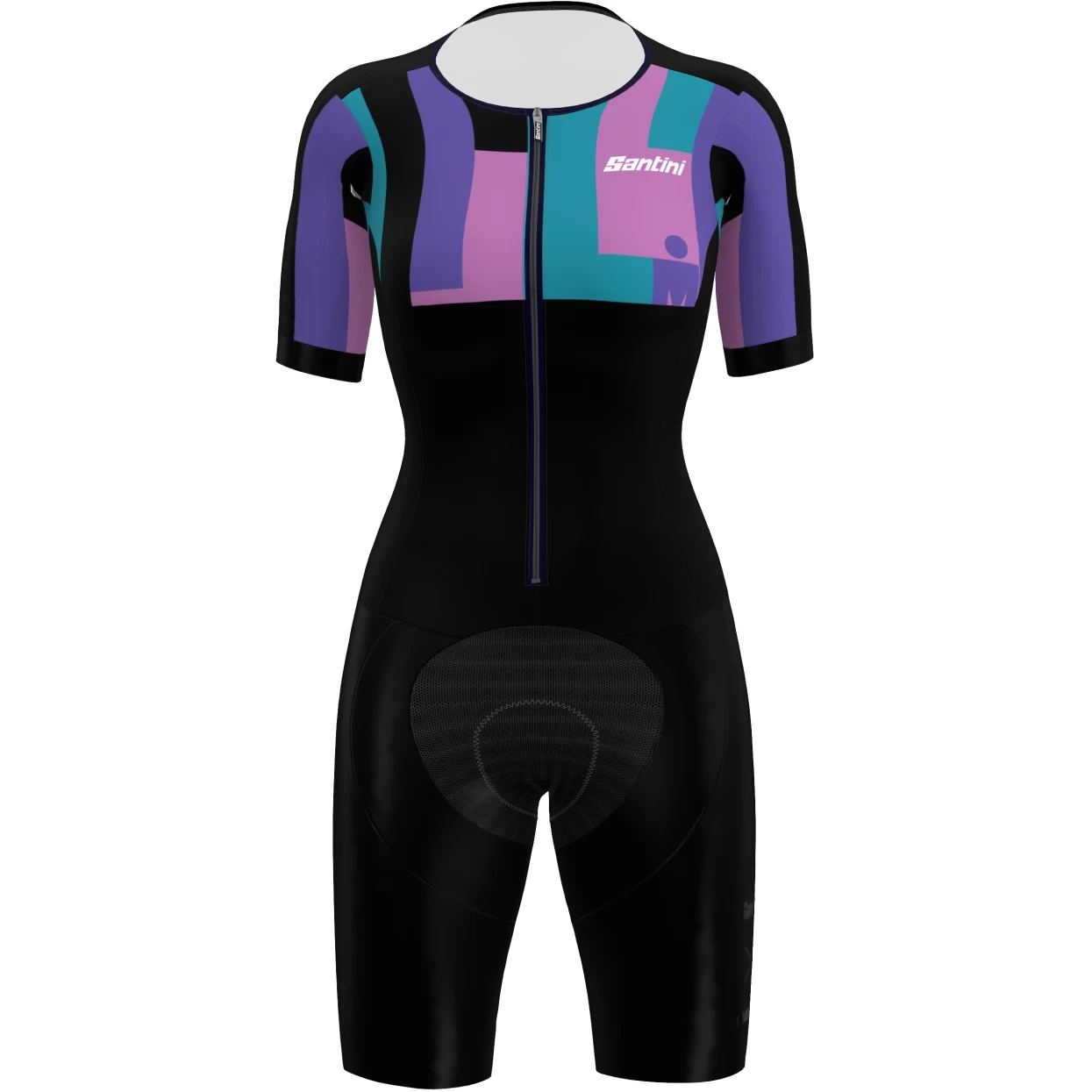 The innovative Viper triathlon suit is a combination of wind tunnel tested materials for maximum aerodynamics. It features an outside grip on the saddle area and extended short sleeves with an elastic grip.