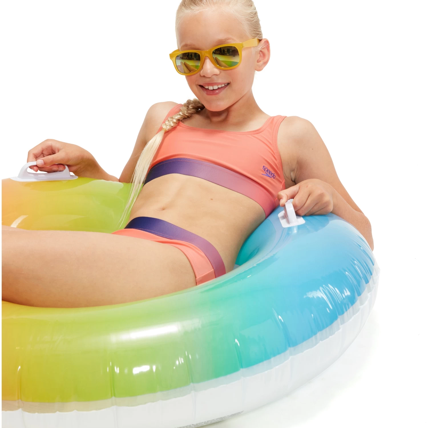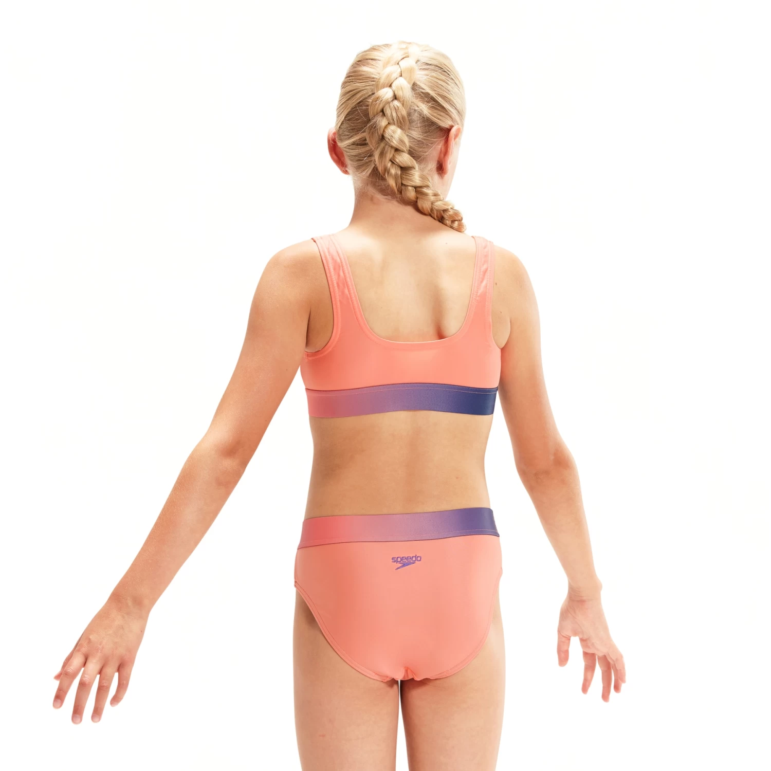 Exuding teen-friendly style, this stylish 2-piece coral bikini features trendy purple trim and pretty straps. Ideal whether your teen is swimming or sunbathing, the comfortable design is lined at the front for comfort and modesty. ECO EnduraBrite fabric offers superior color performance so you can enjoy sunny color longer.