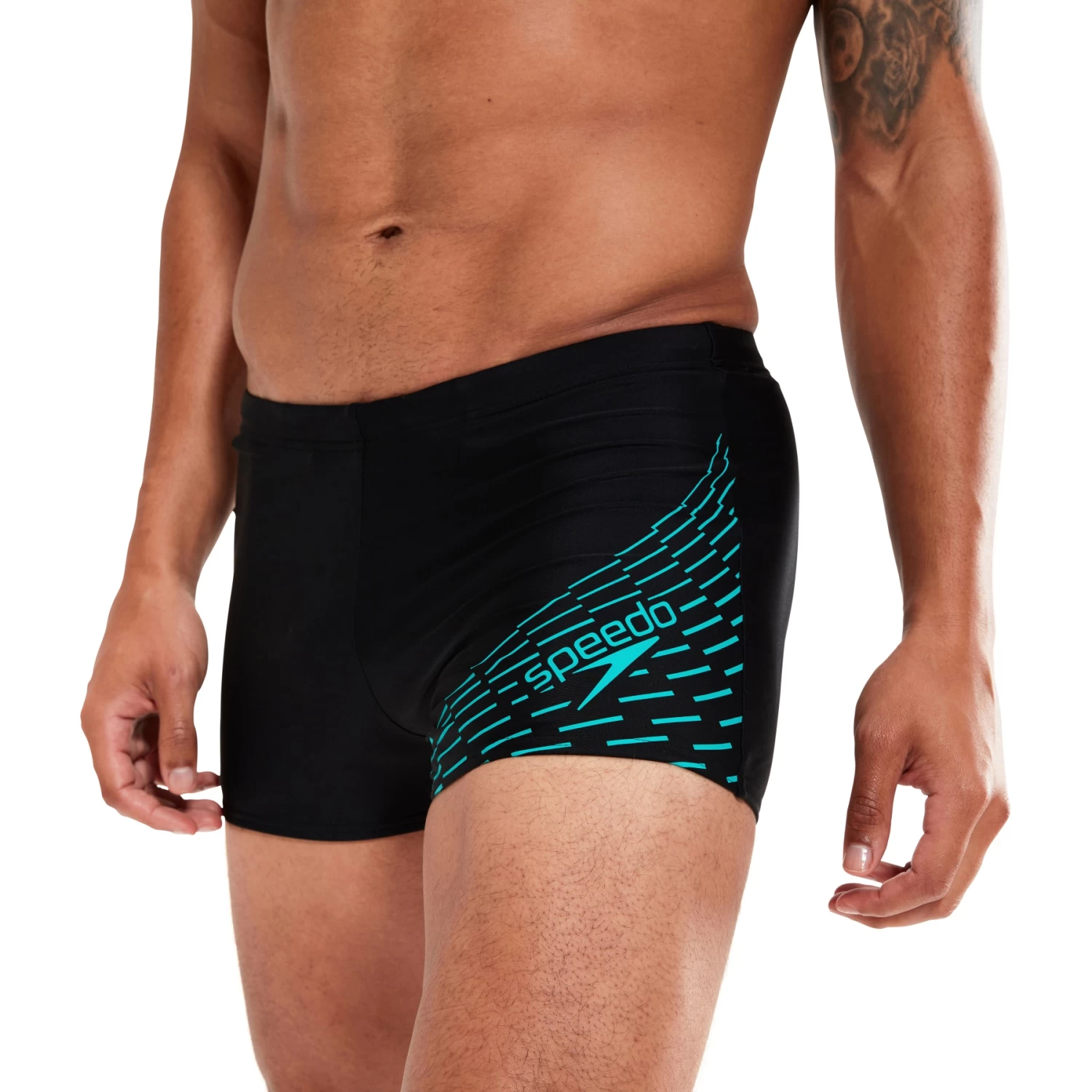 Style and durability from the Essentials range. Feel comfortable during your workout with the Medley Logo Aquashort, featuring a fitted drawstring waist and stylish asymmetrical kinetic wave design.