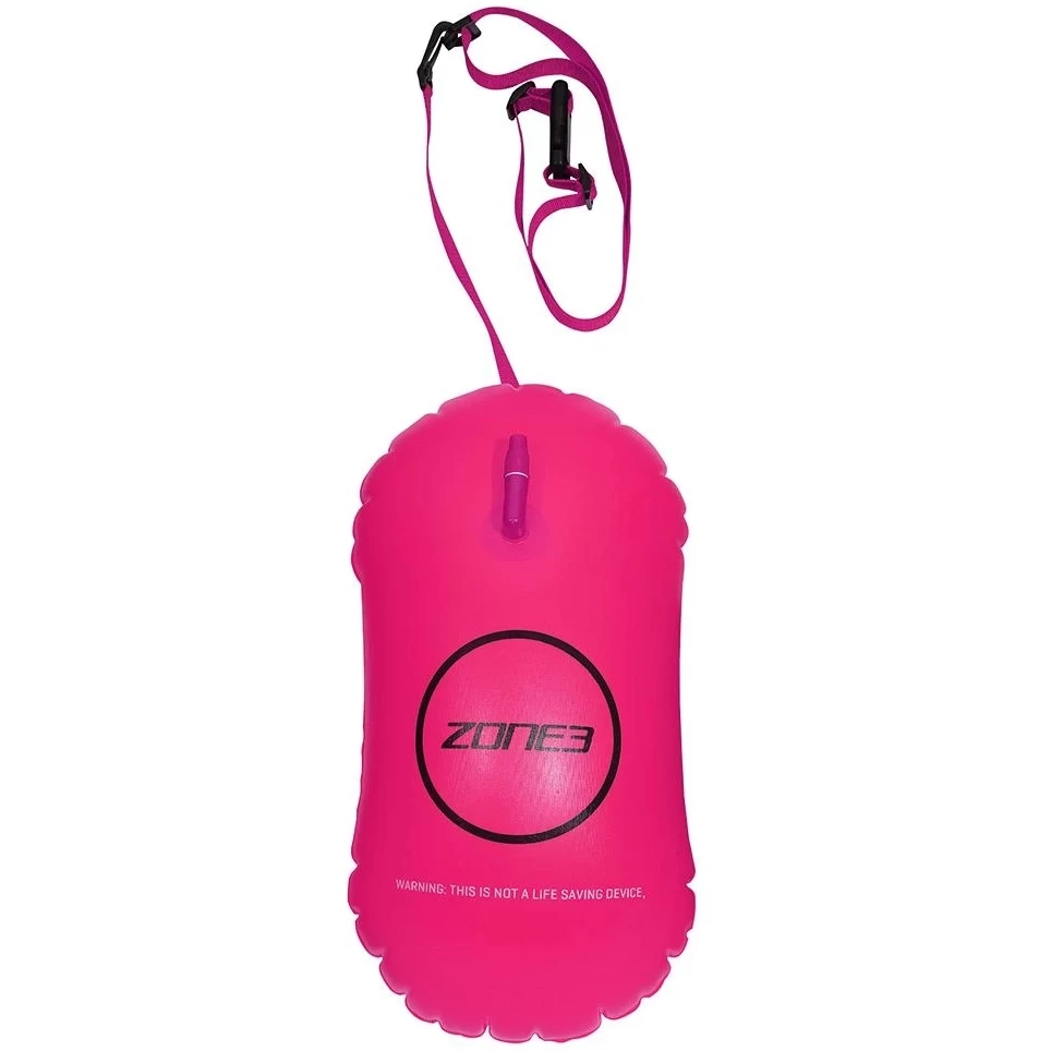 In contrast with to the best-selling 28L Safety Buoy & Dry Bag by Zone3, it does not feature internal storage and is only a single layer of material. It is however approximately the same size with an inflated size of approx. 41x22cm and deflated 48 x 29cm.