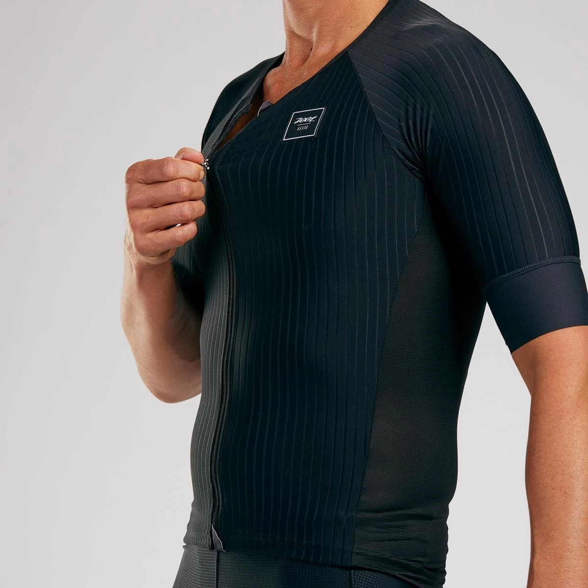 Highway Aero fabric’s ribbed structure is placed in critical areas of the garment to reduce air turbulence created behind the athlete, reducing drag and saving watts. If you want the comfort of a two-piece kit but all the aerodynamic benefits of a one-piece, this is the top for you.