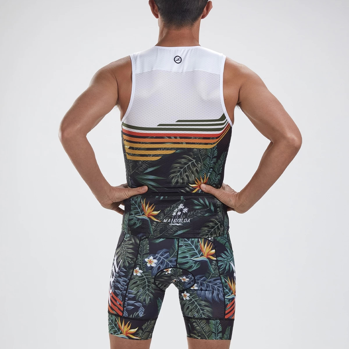 The LTD Tri Tank is for the triathlete who enjoys the versatility and comfort of a two-piece tri suit. This tank provides essential sun protection and comfort without sacrificing style. Blown out mesh back and sides provide enhanced breathability and promote airflow to keep you cool. It also includes enough storage space to fuel up for those lengthy races.